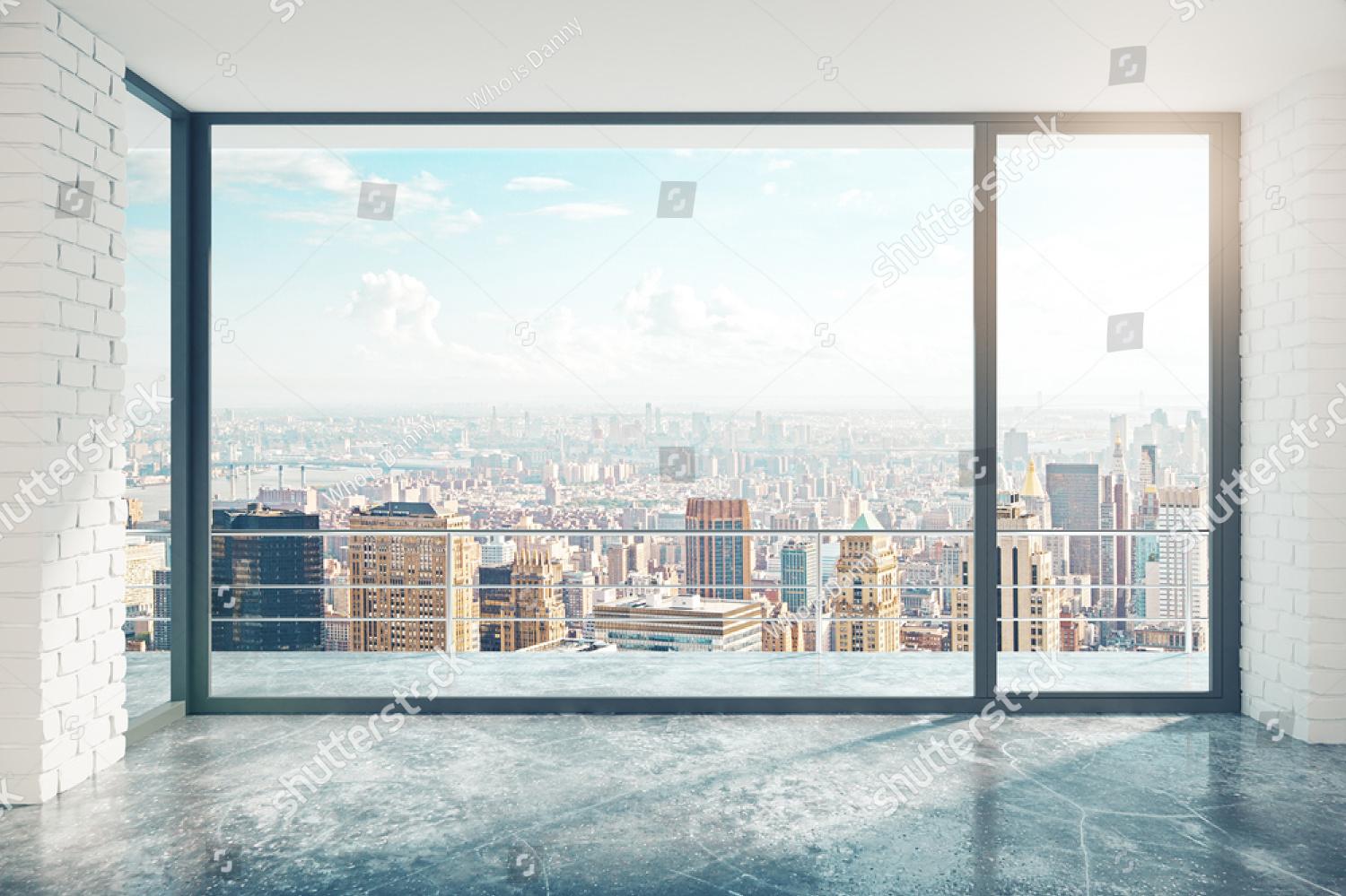 Артикул: stock-photo-empty-loft-style-room-with-concrete-floor-and-city-view-d-render-345567902.jpg