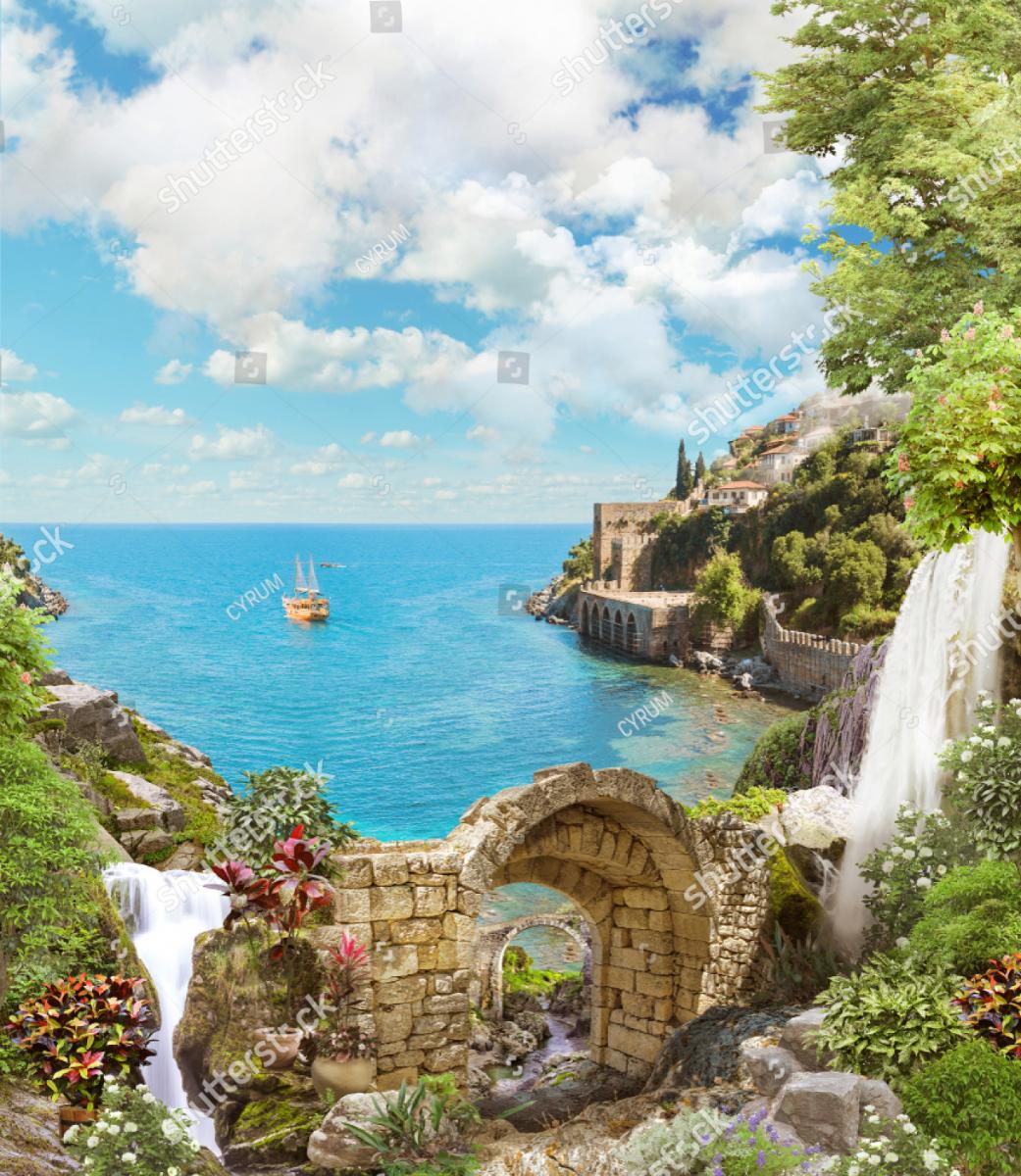 Артикул: stock-photo-beautiful-views-of-the-mountains-and-the-sea-flowers-of-lupine-arch-digital-fresco-1416176477.jpg